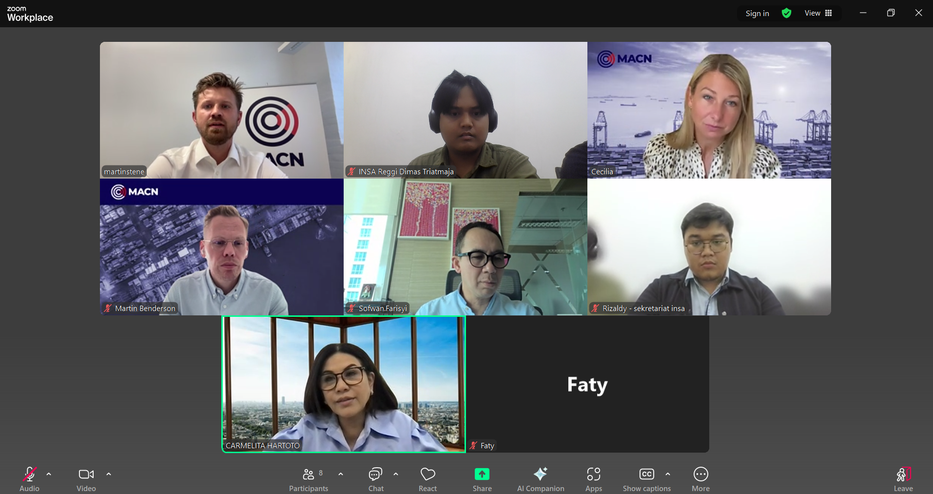 Jakarta – Ketua Umum DPP INSA, Carmelita Hartoto, bersama jajaran pengurus INSA, mengadakan pertemuan strategis dengan Chief Executive Officer (CEO) Maritime Anti-Corruption Network (MACN), Mrs. Cecilia Muller Torbrand, beserta timnya, melalui virtual Zoom Meeting (8/7/2025).